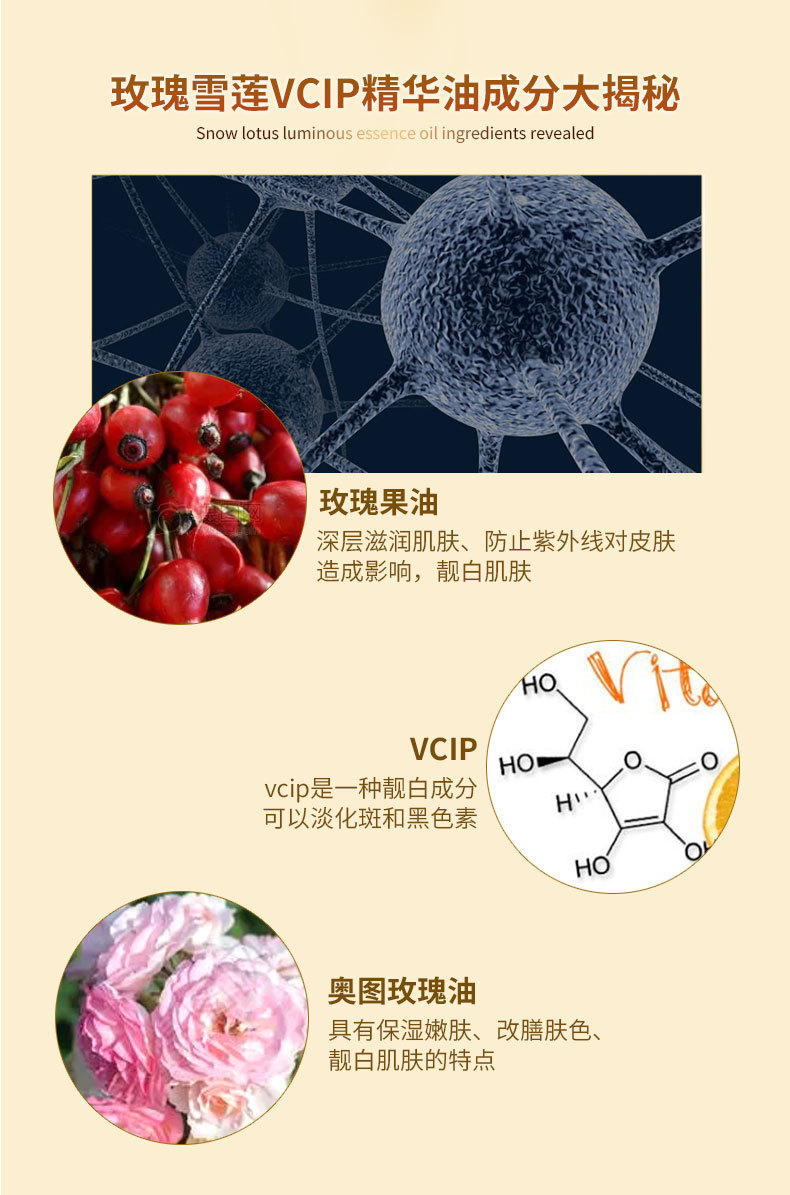 Add Tianshan snow lotus to moisturize and nourish while reducing fine lines, making the skin elastic, tender, and smooth!
